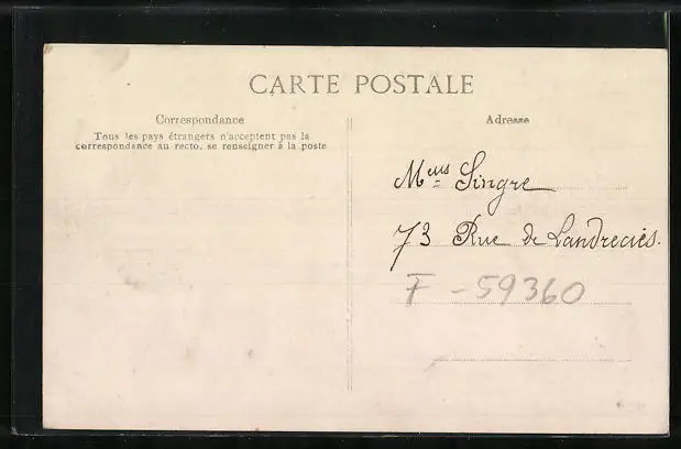 Personenbezogene Daten auf der Rückseite der Karte wurden durch blauen Textmarker unkenntlich gemacht. Die blauen Stellen sind auf die Vorderseite durchgeweicht und wirken sich negativ auf das Postkartenfoto aus