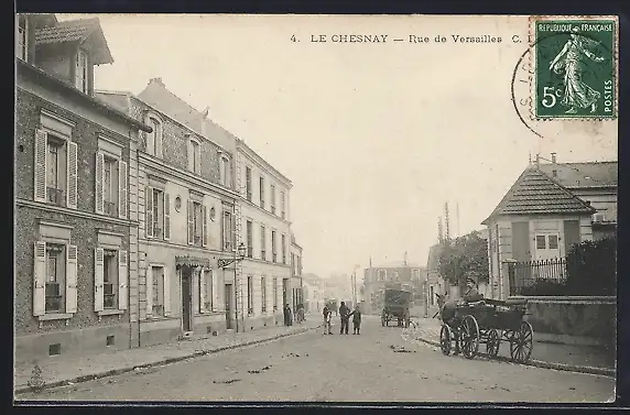 AK Le Chesnay, Rue de Versailles avec calèche et passants