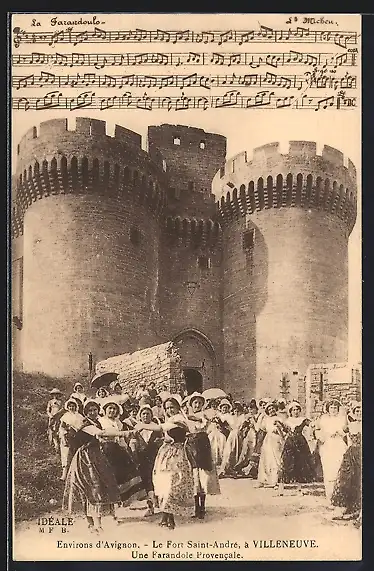 AK Le Fort St-André á Villeneuve, Une farandole Provencale