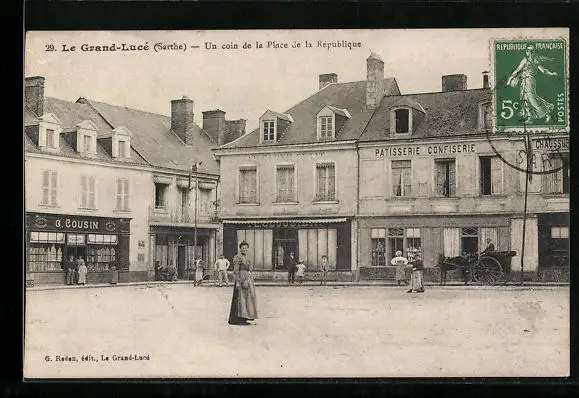 AK Le Grand-Lucé, Un coin de la Place de la Republique