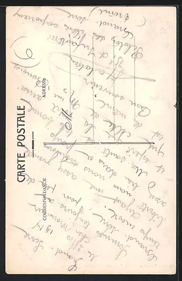 Personenbezogene Daten auf der Rückseite der Karte wurden durch blauen Textmarker unkenntlich gemacht. Die blauen Stellen sind auf die Vorderseite durchgeweicht und wirken sich negativ auf das Postkartenfoto aus