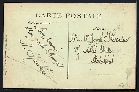 Personenbezogene Daten auf der Rückseite der Karte wurden durch blauen Textmarker unkenntlich gemacht. Die blauen Stellen sind auf die Vorderseite durchgeweicht und wirken sich negativ auf das Postkartenfoto aus