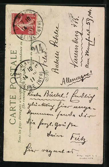 alte Ansichtskarte, gelaufen 1911, Eckknick li. unten, guter Zustand