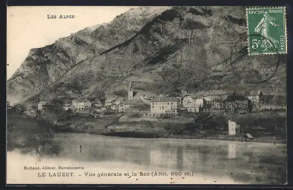 AK Le Lauzet, Les Alpes, Vue générale et le Lac