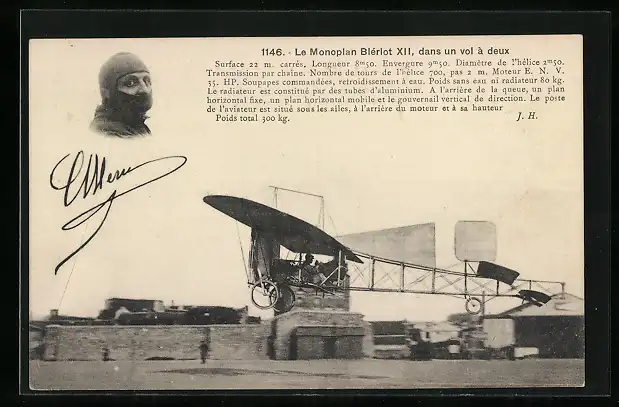 AK Le Monoplan Blériot XII, dans un vol à deux, Eindecker-Flugzeug