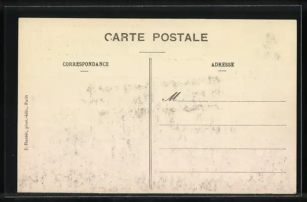 Personenbezogene Daten auf der Rückseite der Karte wurden durch blauen Textmarker unkenntlich gemacht. Die blauen Stellen sind auf die Vorderseite durchgeweicht und wirken sich negativ auf das Postkartenfoto aus