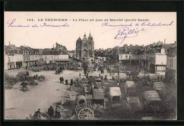 AK Le Neubourg, La Place un jour de Marché partie Ouest