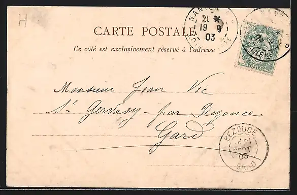 alte Ansichtskarte, gelaufen 1903, Stempelspur, guter Zustand