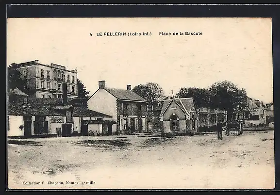 AK Le Pellerin, Place de la Bascule avec bâtiments et calèche
