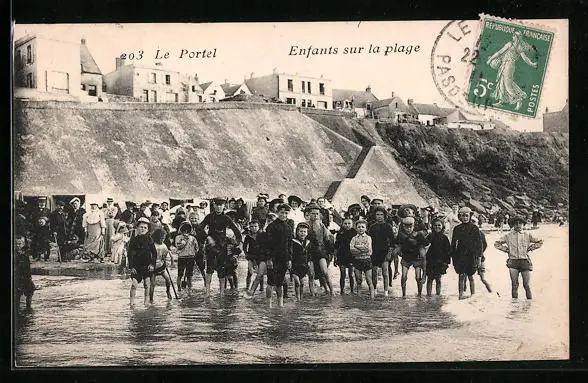 AK Le Portel, Enfants sur la plage