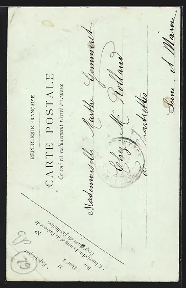 Personenbezogene Daten auf der Rückseite der Karte wurden durch blauen Textmarker unkenntlich gemacht. Die blauen Stellen sind auf die Vorderseite durchgeweicht und wirken sich negativ auf das Postkartenfoto aus
