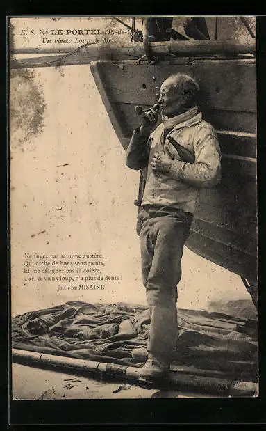 AK Le Portel, Un vieux Loup de Mer, Fischer beim Feierabend-Pfeifchen