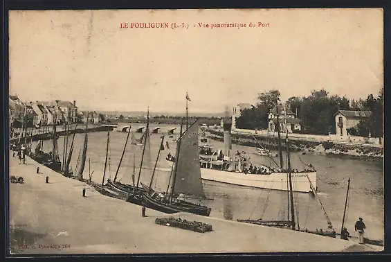 AK Le Pouliguen, Vue panoramique du port avec voiliers et vapeur