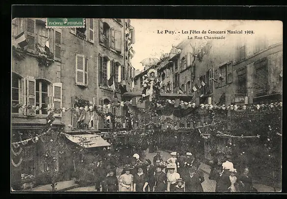 AK Le Puy, Les Fetes du Concours Musical 1909-La Rue Chaussade