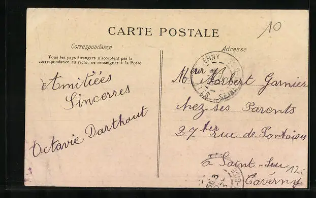 Personenbezogene Daten auf der Rückseite der Karte wurden durch blauen Textmarker unkenntlich gemacht. Die blauen Stellen sind auf die Vorderseite durchgeweicht und wirken sich negativ auf das Postkartenfoto aus