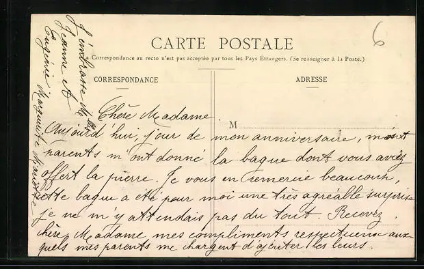 Personenbezogene Daten auf der Rückseite der Karte wurden durch blauen Textmarker unkenntlich gemacht. Die blauen Stellen sind auf die Vorderseite durchgeweicht und wirken sich negativ auf das Postkartenfoto aus