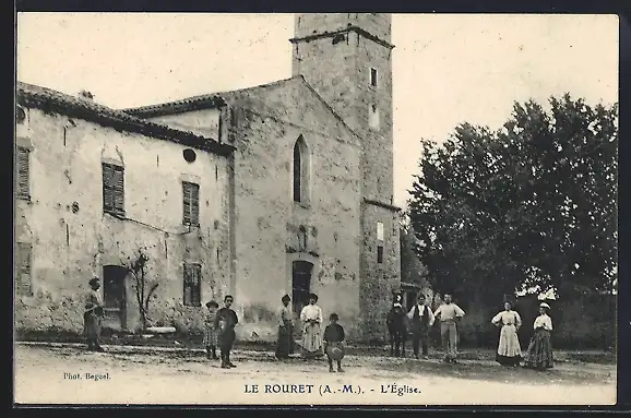 AK Le Rouret, L`Église et habitants devant le bâtiment