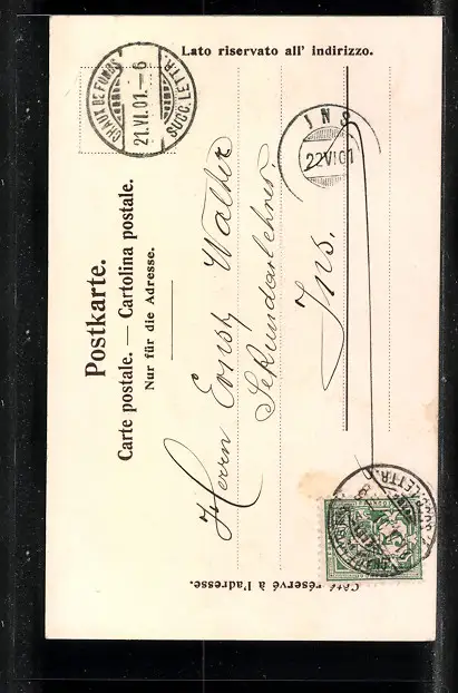 alte Ansichtskarte, gelaufen 1901, Albumspuren, guter Zustand