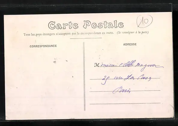 Personenbezogene Daten auf der Rückseite der Karte wurden durch blauen Textmarker unkenntlich gemacht. Die blauen Stellen sind auf die Vorderseite durchgeweicht und wirken sich negativ auf das Postkartenfoto aus