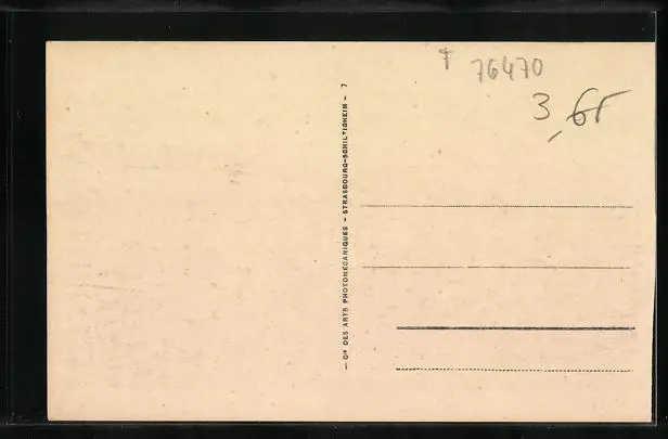 Personenbezogene Daten auf der Rückseite der Karte wurden durch blauen Textmarker unkenntlich gemacht. Die blauen Stellen sind auf die Vorderseite durchgeweicht und wirken sich negativ auf das Postkartenfoto aus