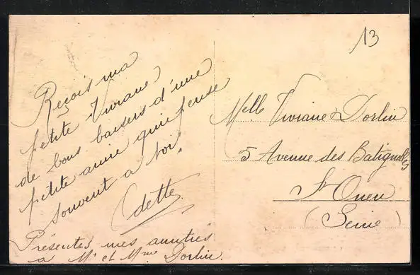 Personenbezogene Daten auf der Rückseite der Karte wurden durch blauen Textmarker unkenntlich gemacht. Die blauen Stellen sind auf die Vorderseite durchgeweicht und wirken sich negativ auf das Postkartenfoto aus