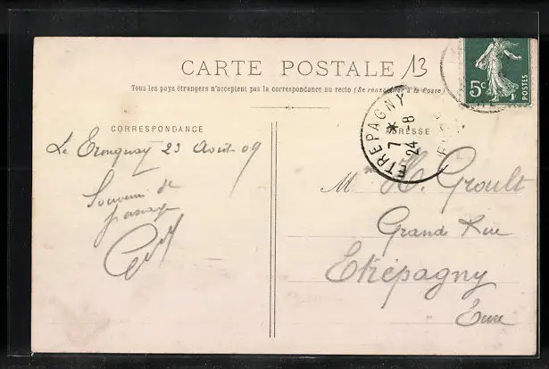 alte Ansichtskarte, gelaufen 1909, guter Zustand