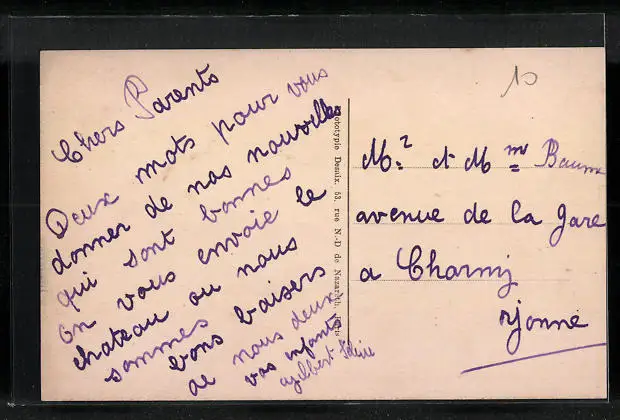 Personenbezogene Daten auf der Rückseite der Karte wurden durch blauen Textmarker unkenntlich gemacht. Die blauen Stellen sind auf die Vorderseite durchgeweicht und wirken sich negativ auf das Postkartenfoto aus