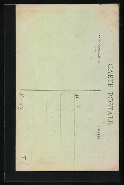 Personenbezogene Daten auf der Rückseite der Karte wurden durch blauen Textmarker unkenntlich gemacht. Die blauen Stellen sind auf die Vorderseite durchgeweicht und wirken sich negativ auf das Postkartenfoto aus