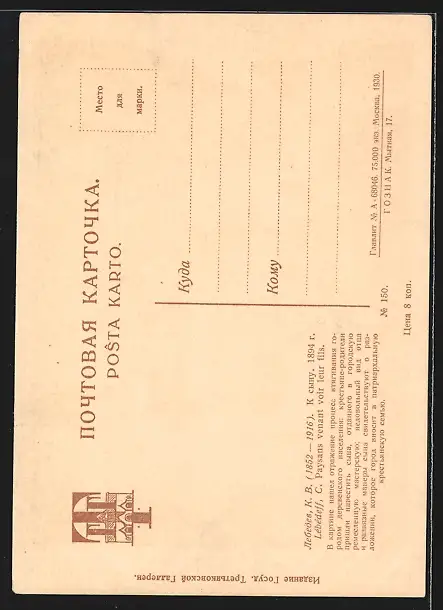 Personenbezogene Daten auf der Rückseite der Karte wurden durch blauen Textmarker unkenntlich gemacht. Die blauen Stellen sind auf die Vorderseite durchgeweicht und wirken sich negativ auf das Postkartenfoto aus
