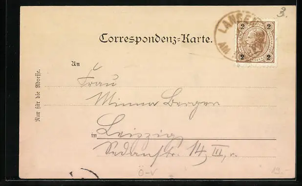 Personenbezogene Daten auf der Rückseite der Karte wurden durch blauen Textmarker unkenntlich gemacht. Die blauen Stellen sind auf die Vorderseite durchgeweicht und wirken sich negativ auf das Postkartenfoto aus