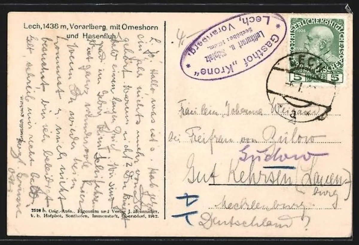 AK Lech /Vorarlberg, Dorf mit Kirche, Omeshorn und Hasenfluh