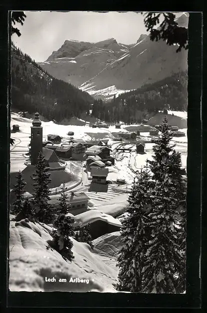 AK Lech am Arlberg, Teilansicht mit Kirche im Winter