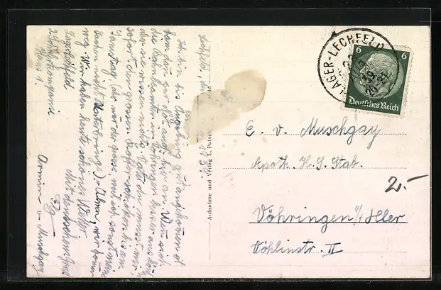 alte Ansichtskarte, gelaufen 1939, rückseitig Klebe- und Papierreste, guter Zustand