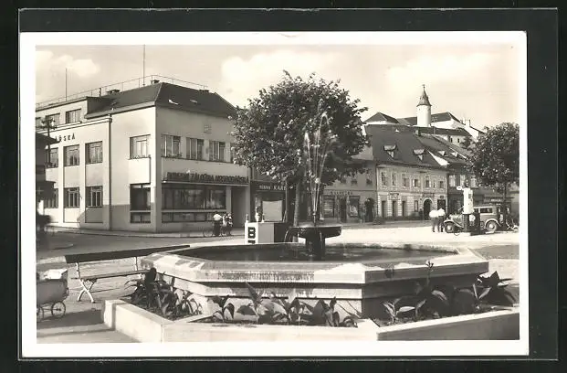 AK Ledec n. Sáz., Marktplatz mit Brunnen