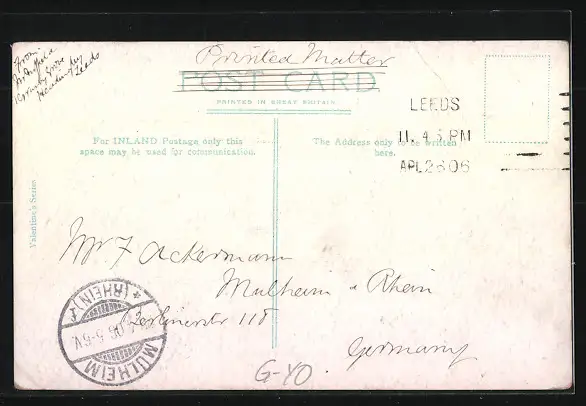 alte Ansichtskarte, gelaufen 1906, Briefmarke entfernt, Bugspur li. oben, guter Zustand
