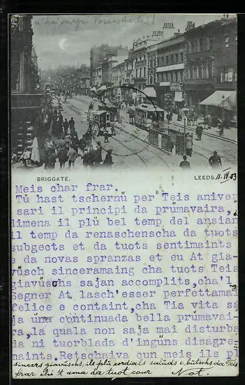 AK Leeds, Briggate, Strassenbahn und Kutsche
