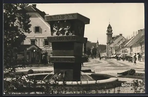 AK Leibnitz, Strassenpartie mit Brunnen