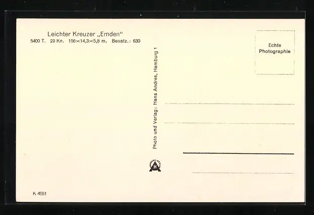 AK Leichter Kreuzer Emden, Kriegsmarine