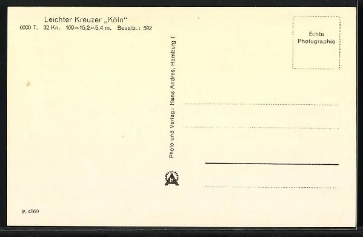 AK Leichter Kreuzer Köln der Kriegsmarine