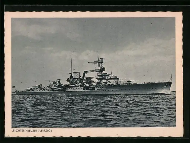 AK Leichter Kreuzer Leipzig der Kriegsmarine macht Fahrt