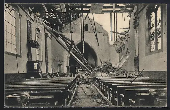 AK Leintrey, Inneres der durch franz. Granatfeuer zerstörten Kirche