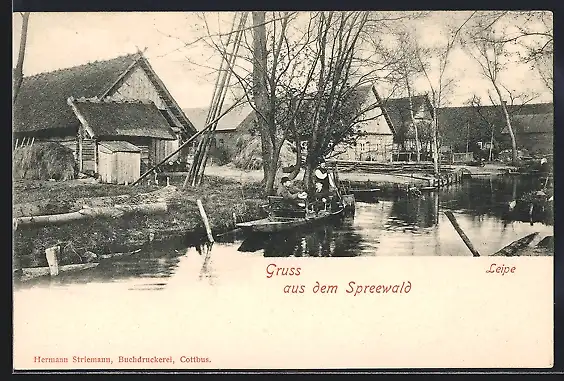 AK Leipe, Uferpartie mit Wohnhäusern und Boot