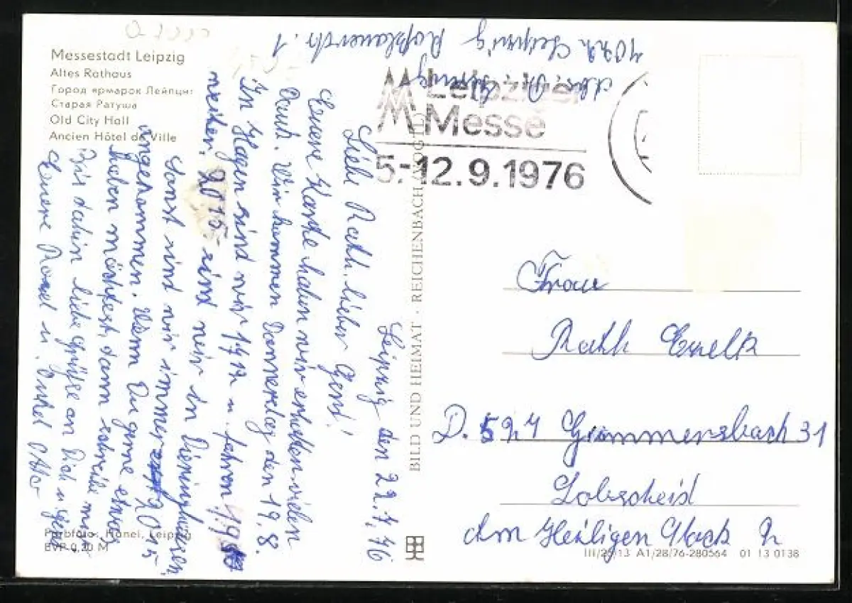 alte Ansichtskarte, gelaufen 1976, Briefmarke entfernt, Eckknicke li. oben, guter Zustand
