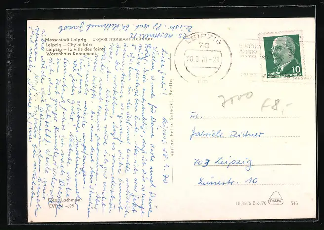 alte Ansichtskarte, gelaufen 1970, guter Zustand