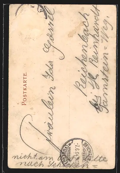 alte Ansichtskarte, gelaufen 1904, Briefmarke entfernt, rückseitig Oberflächenschaden, guter Zustand