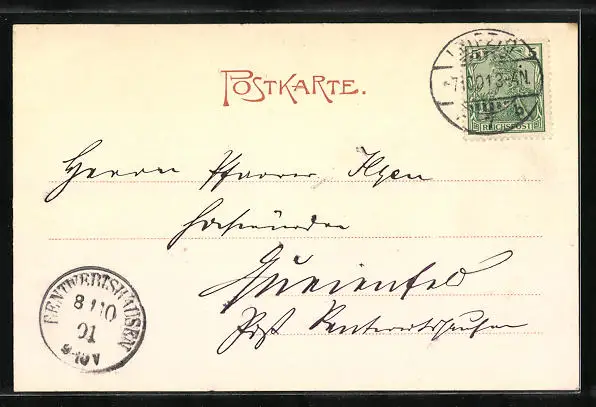alte Ansichtskarte, gelaufen 1901, guter Zustand