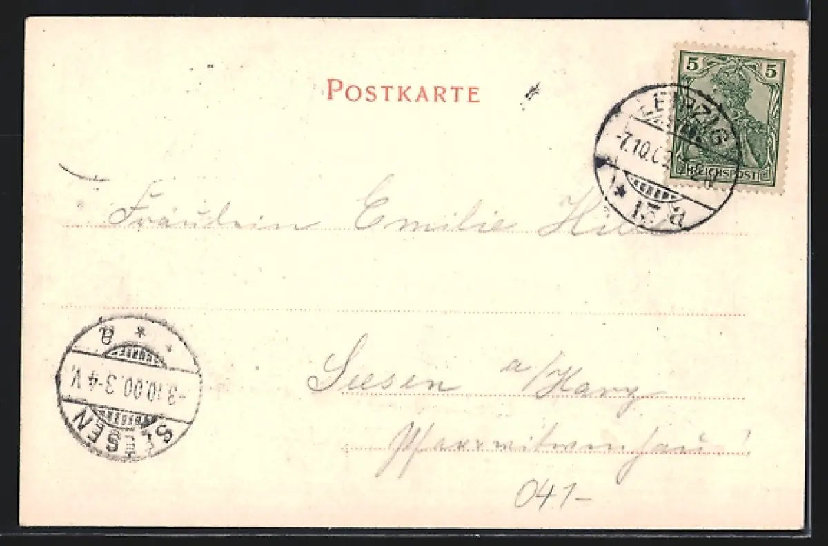 alte Ansichtskarte, gelaufen 1900, Stempelspur, guter Zustand
