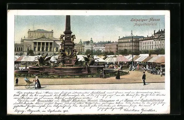 AK Leipzig, Augustusplatz mit Marktbetrieb