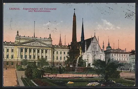 AK Leipzig, Augustusplatz mit Universität und Mendebrunnen