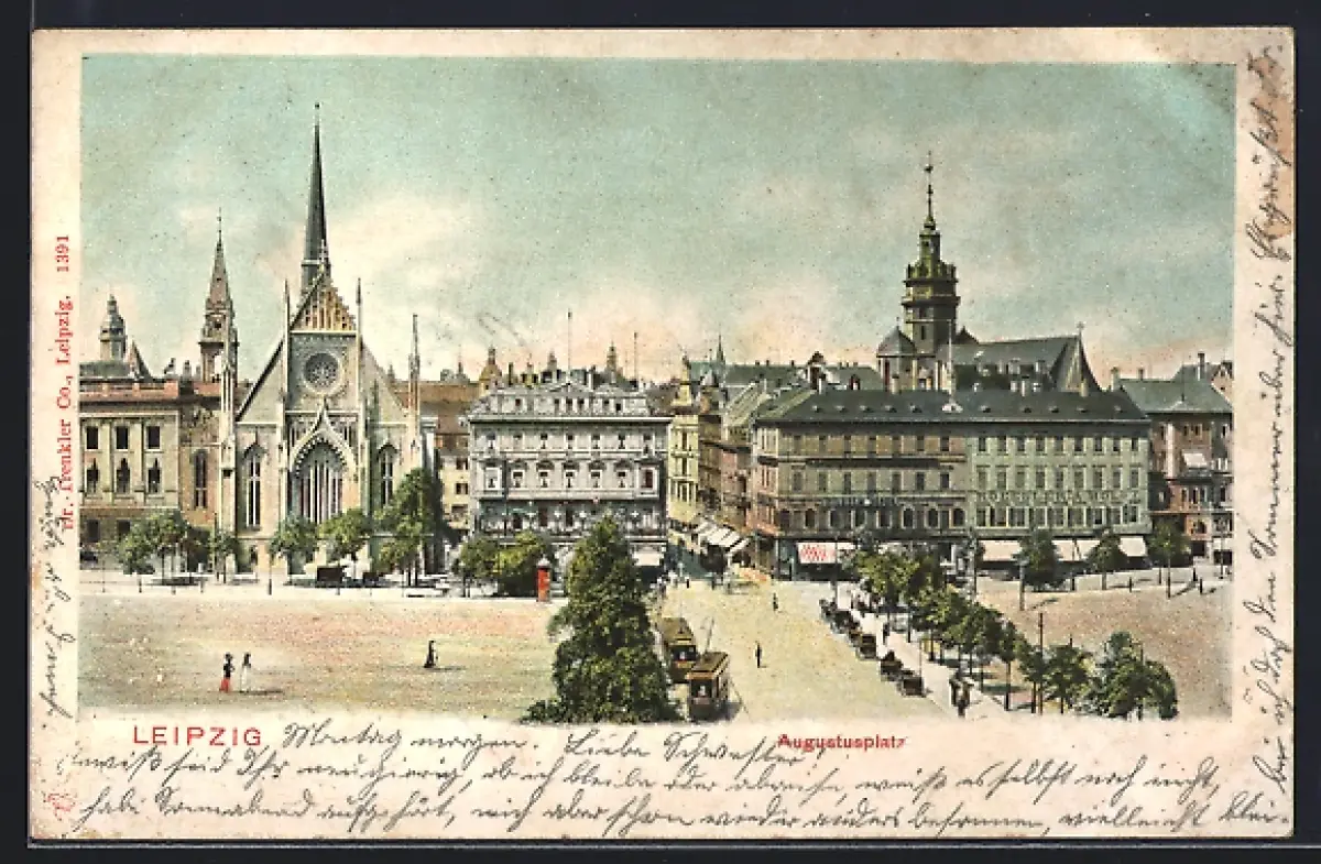 AK Leipzig, Augustusplatz mit Universitätskirche, Hotel Hauffe, Neues Theater